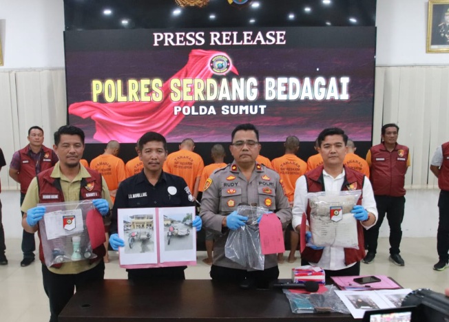 “Para pelaku dijerat dengan Pasal 81 jo Pasal 69 dan/atau Pasal 83 jo Pasal 68 Undang-Undang Nomor 18 Tahun 2017 tentang Perlindungan Pekerja Migran Indonesia, subsider Pasal 55 ayat (1) ke-1e KUHPidana. Ancaman hukumannya maksimal 10 tahun penjara dan denda hingga Rp15 miliar,” ujar Kompol Rudy dalam konferensi pers di Aula Patritama Polres Sergai, Kamis (23/10/2025). (Rio)
