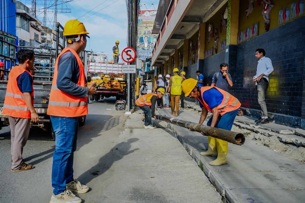 Adapun penataan di Jalan Zainul Arifin baru dimulai pada pekan ini, mencakup pembongkaran tiang dan pemutusan kabel udara. Di Jalan Imam Bonjol, pekerjaan masih berlangsung berupa penggalian serta penyambungan jaringan kabel bawah tanah.