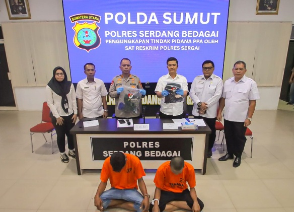 “Kemudian, korban bercerita bahwa tersangka membuka celananya lalu juga membuka celananya sendiri, kemudian tersangka memasukkan alat kelaminnya ke kemaluan korban. Akibat dari peristiwa tersebut korban mengalami Ketakutan,” jelas Kapolres Sergai.