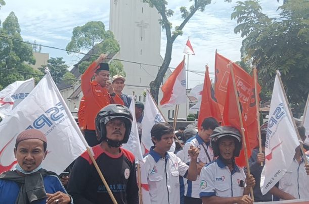 Fokusmedan.com : Ratusan buruh yang tergabung dalam Partai Buruh dan Federasi Serikat Pekerja Metal Indonesia (FSPMI) Sumatera Utara menggelar aksi unjuk rasa di depan Kantor Gubernur Sumut, Kamis (30/10/2025). Dalam aksinya, massa menuntut Gubernur Sumatera Utara Bobby Nasution menaikkan Upah Minimum Provinsi (UMP) tahun 2026 sebesar 10,5 persen.