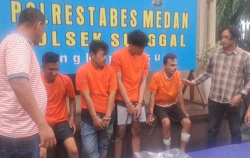 Berdasarkan hasil penyelidikan dan rekaman CCTV, polisi lebih dulu menangkap dua pelaku pada Minggu (4/1/2026) di Jalan Kelambir V, Kelurahan Lalang, Kecamatan Medan Sunggal. Pengembangan kasus kemudian mengarah pada penangkapan dua tersangka lainnya di Jalan Pasar Kecil, Desa Sei Semayang.