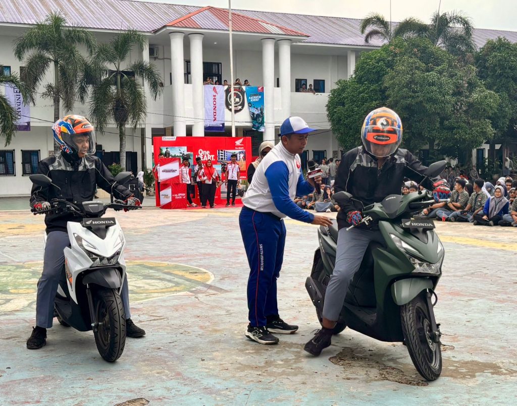 Tak hanya menghadirkan hiburan dan semangat kompetisi, roadshow Honda DBL 2026 kali ini juga menyisipkan edukasi keselamatan berkendara. Instruktur safety riding PT Indako Trading Coy, Sofiyan Hazri, memaparkan pentingnya memahami lebih dalam tentang blind spot saat berkendara, khususnya bagi generasi muda yang mulai aktif menggunakan sepeda motor. “Melalui edukasi ini, siswa diajak untuk memahami area blind spot saat berkendara guna meningkatkan kesadaran keselamatan di jalan, sejalan dengan semangat #cari_aman,” ujar Sofiyan.