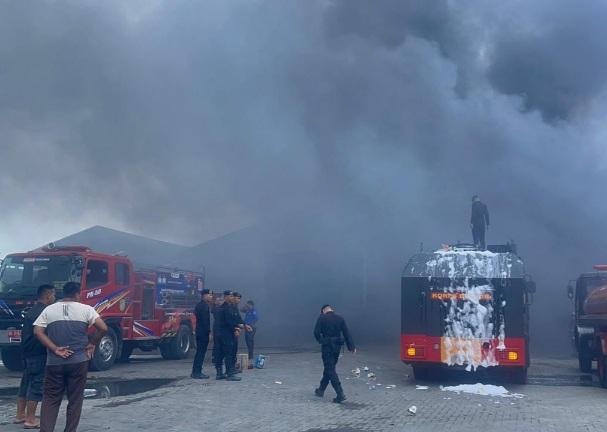 Fokusmedan.com : Sebanyak 30 personel Batalyon A Pelopor Satuan Brimob Polda Sumatera Utara dikerahkan untuk membantu memadamkan kebakaran di area pengangkutan MT Trans, Jalan Jati No.53, Kelurahan Pulo Brayan Bengkel, Kecamatan Medan Timur, Kota Medan.